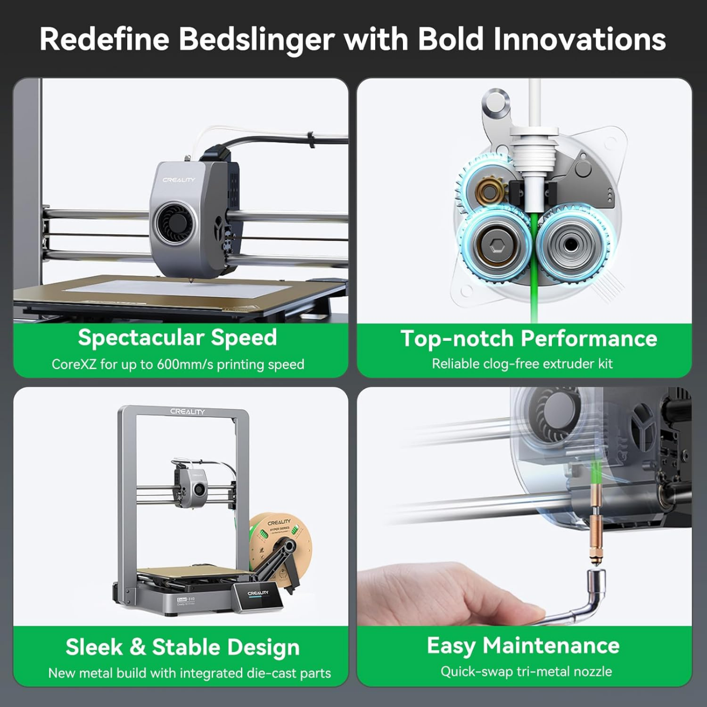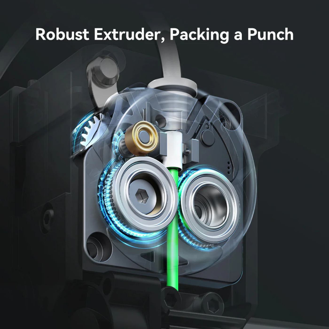 The new CoreXZ motion system is the star of the show. The X and Z axes are rigged together, allowing two high-torque motors to work in unison for a quick, 0.03s response. This results in 600mm/s speeds and 20000mm/s² acceleration. The entire frame is built from rigid, die-cast aluminum for a rock-solid foundation.