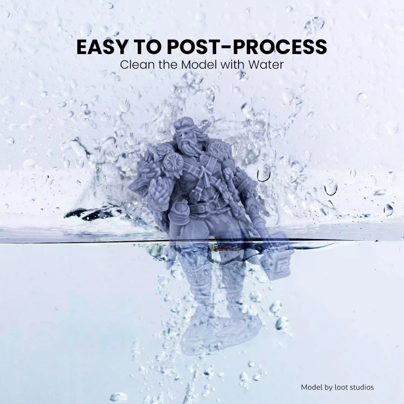 Achieve sharp edges and stunning surface finishes without the mess of traditional resin cleaning. Simply rinse your prints in water and cure them under a UV light.